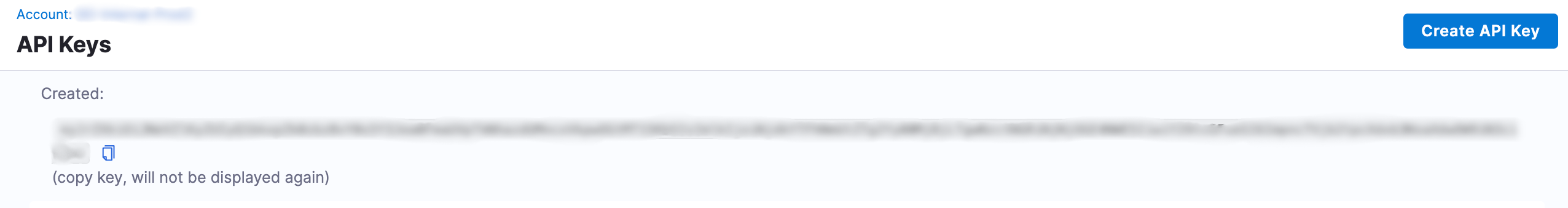 - Click the Create button to generate your new API key.